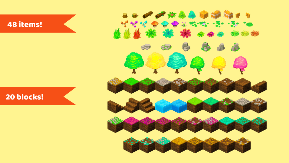 Forest Isometric Block Tileset (20 terrain blocks and 48 items).
