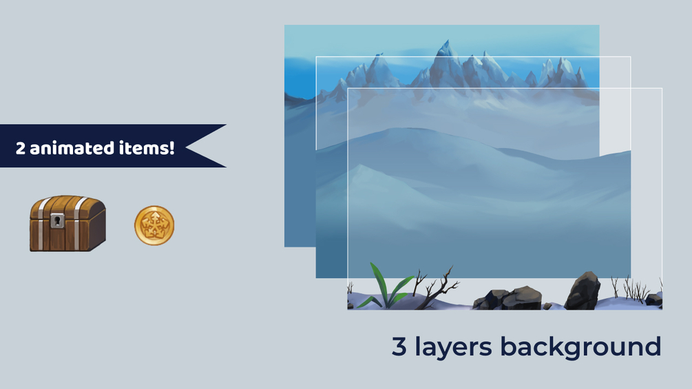- 2 animated items and objects (coin, chest)