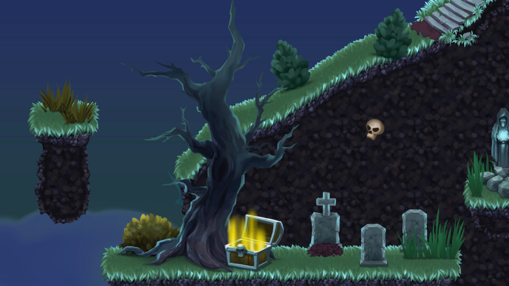 - 2 animated items and objects (coin, chest)