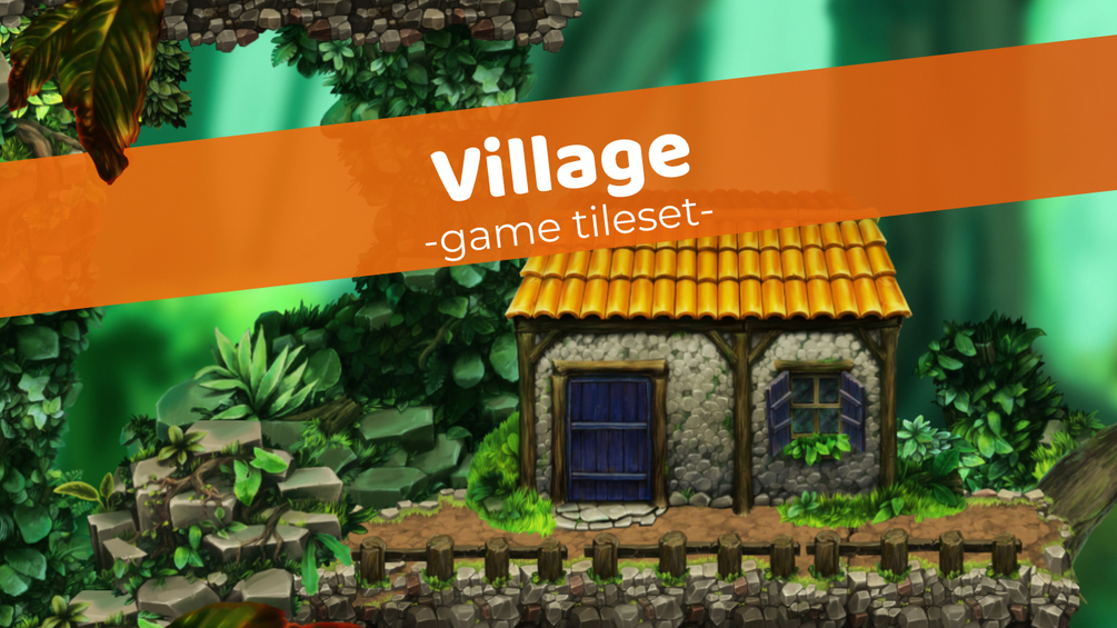 Village Game Tileset (63 terrain tiles, 31 items and 1 background)